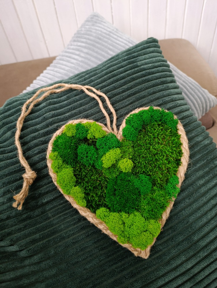 • Materiál: různé druhy a odstíny stabilizovaného mechu, přírodní lano