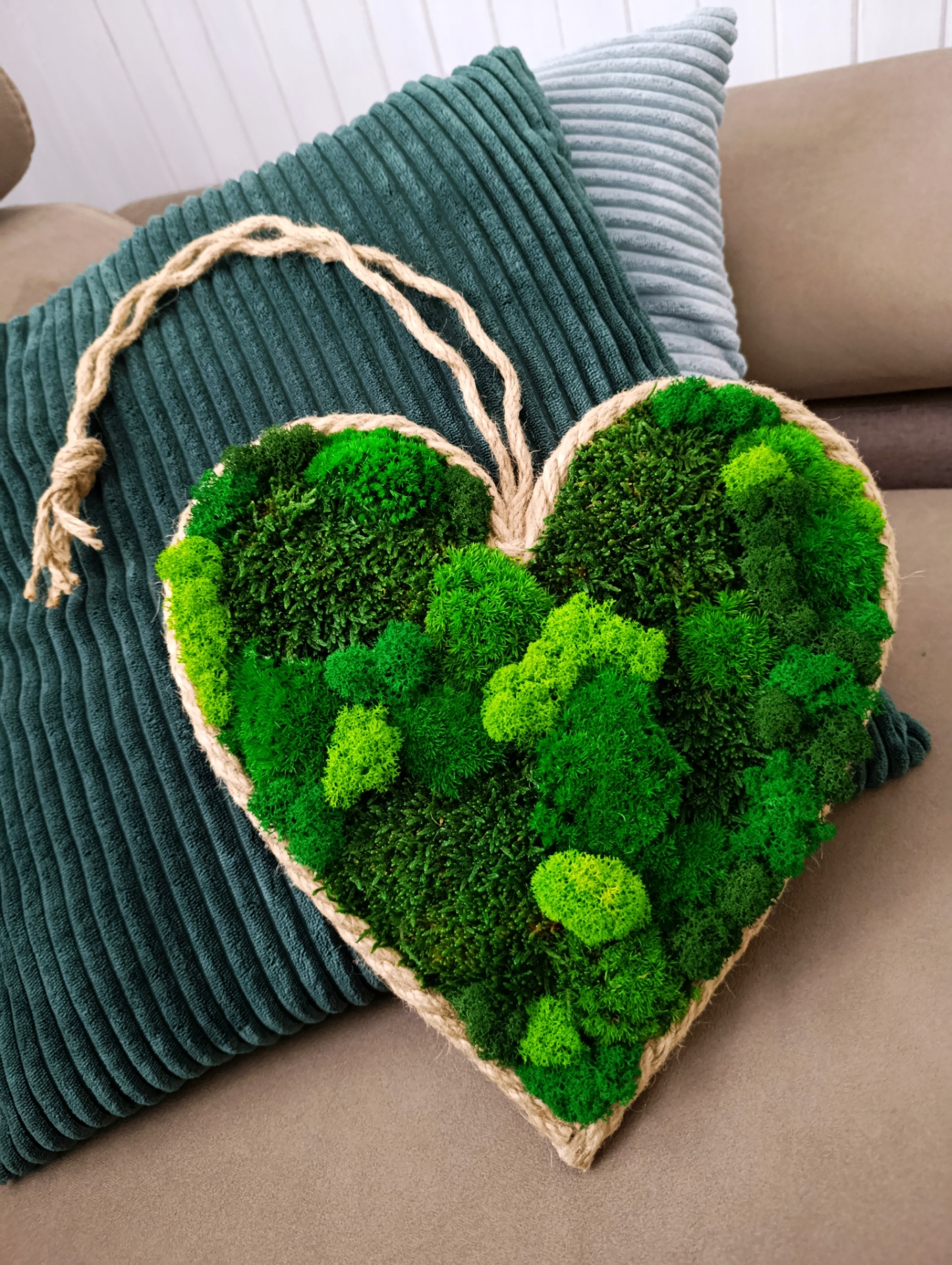 • Materiál: různé druhy a odstíny stabilizovaného mechu, přírodní lano